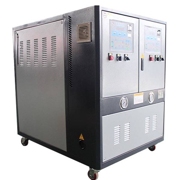 雙溫雙控模溫機采用導熱油或水為循環介質,其中雙控溫型油式模溫機有200℃/300℃/350℃機型,最高溫度可以達到350℃,雙控溫型水式模溫機有98℃/120℃ /150℃ /180℃ 等機型,最高控制溫度可達180℃,完全可以滿足常規的應用需求。機組內包含兩套獨立控溫系統(同時提供不同控制溫度)的一種非標模溫機,常常也被稱為雙溫模溫機、雙控溫型模溫機、雙溫雙控模溫機或是雙機一體模具溫度控制機等等。