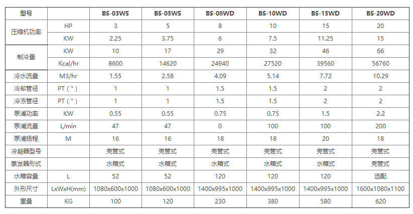 5.蒸發器:有盤管式和殼管式兩大類型可供選擇,快速蒸發冷媒,生產低溫水.