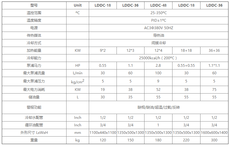 高溫模溫機(jī)外型設(shè)計:專利分離式控制箱設(shè)計,斷絕水氣、油氣熱量侵入,延長電氣零件.機(jī)電材料:采用日本[FUJI] [OMRON]等零件組件,2百萬次使用,使用年限長.電路設(shè)計:連鎖防錯電路及實用故障指示,完整保護(hù)模溫機(jī)穩(wěn)定工作. 管路設(shè)計:利德盛采用304不銹鋼一體成型管,全焊接管路設(shè)計,耐酸堿,管損小,加熱均勻,且可以降低介質(zhì)發(fā)生熱解反應(yīng). 加熱裝置:瑞典電熱絲,微電腦全自動三段式加熱法,比其它品牌模溫機(jī)更30%以上,升降溫速度快,溫度更穩(wěn)定.